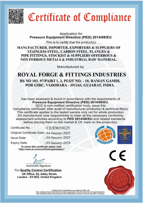 In recognition of the recipient’s dedication, hard work, and successful completion of the required training and skill development in the field of forging and industrial fittings. This achievement reflects a strong commitment to quality, precision, and industry standards, as upheld by Royal Forge & Fitting Industries. We honor this accomplishment as a testament to professional growth and excellence.