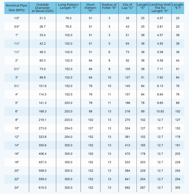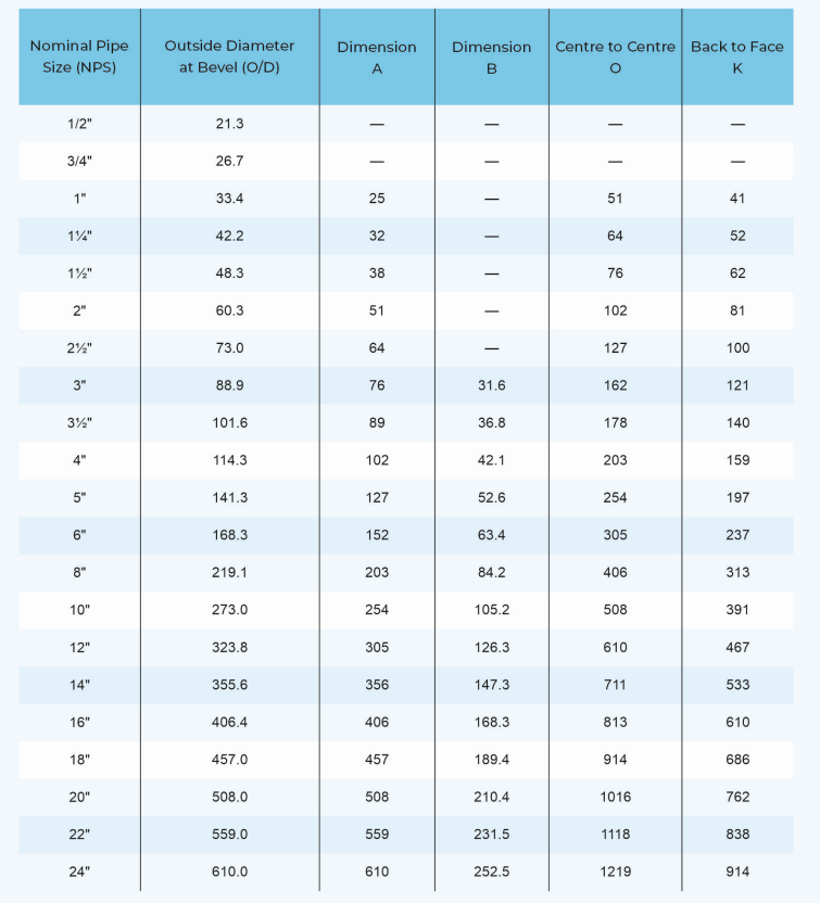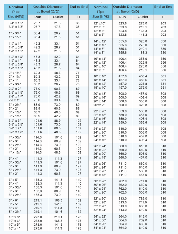 | Standards | ASME/ANSI B16.9, ANSI B16.28, MSS-SP-43 |